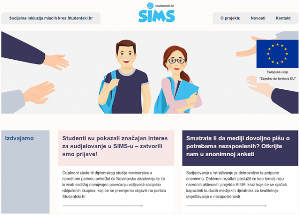 Projekt „SIMS – socijalna inkluzija mladih kroz Studentski.hr” od velikog je značaja kako za mlade nezaposlene tako i za studente diplomskog studija novinarstva koji se uključuju...